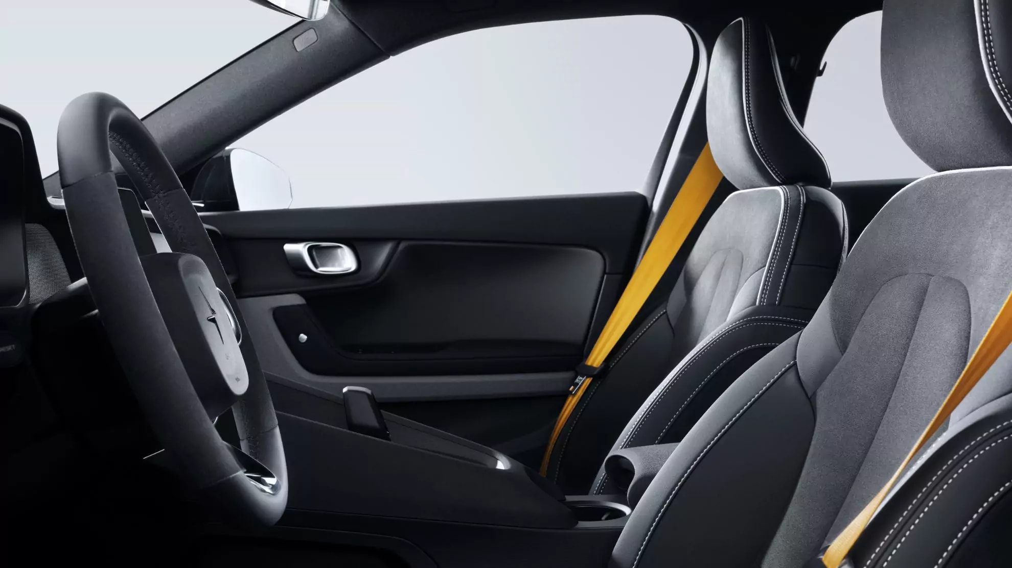 The BST edition 230 is the only Polestar 2 to feature MicroSuede upholstery in Charcoal. Produced with partly recycled Nubuck textile, it provides a more sustainable, high-tech alternative to leather with a sophisticated, sporty feel. The suede texture helps to limit body movement when tapping into the performance potential.