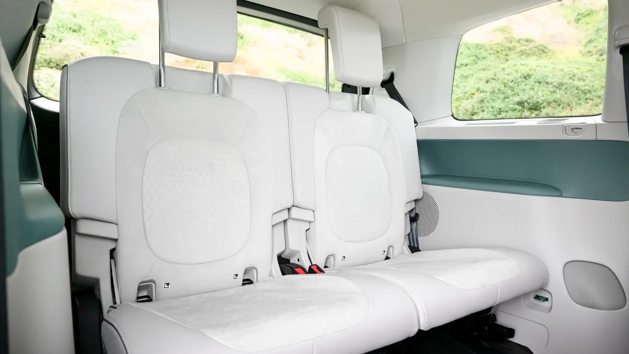 The three-row ID Buzz is only 6.9 inches more in length than the two-row, short-wheelbase (SWB) European ID Buzz debuted last year, but its 127.5-inch wheelbase is 9.9 inches longer. Despite being over a foot longer, the SWB Buzz has the same turning radius as the small Golf hatchback, so the LWB version should be just as maneuverable.