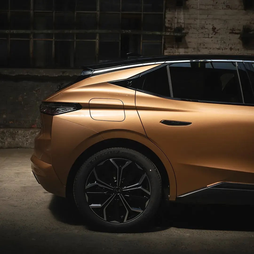 The exterior design of the DS 4 has a crossover essence with a clear inclination towards a “coupe” direction, similar to the BMW X2, Volvo C40, or Audi Q3 Sportback. The most prominent design features include a vertical front with a large and sharply slanted front grille, and a rear section of the roof that slopes sharply downwards to create a “coupe” feel. The “diamond-shaped” motif, which is quite common in the DS brand, is repeated in both the exterior and interior design. From a profile view, there are angular design lines that “intersect” the doors and strive to give the car a characteristic design typical of the brand. The rear windows are darkened, and the DS logo is integrated into the rear taillights. The door handles are retractable, adding to the impressive design.