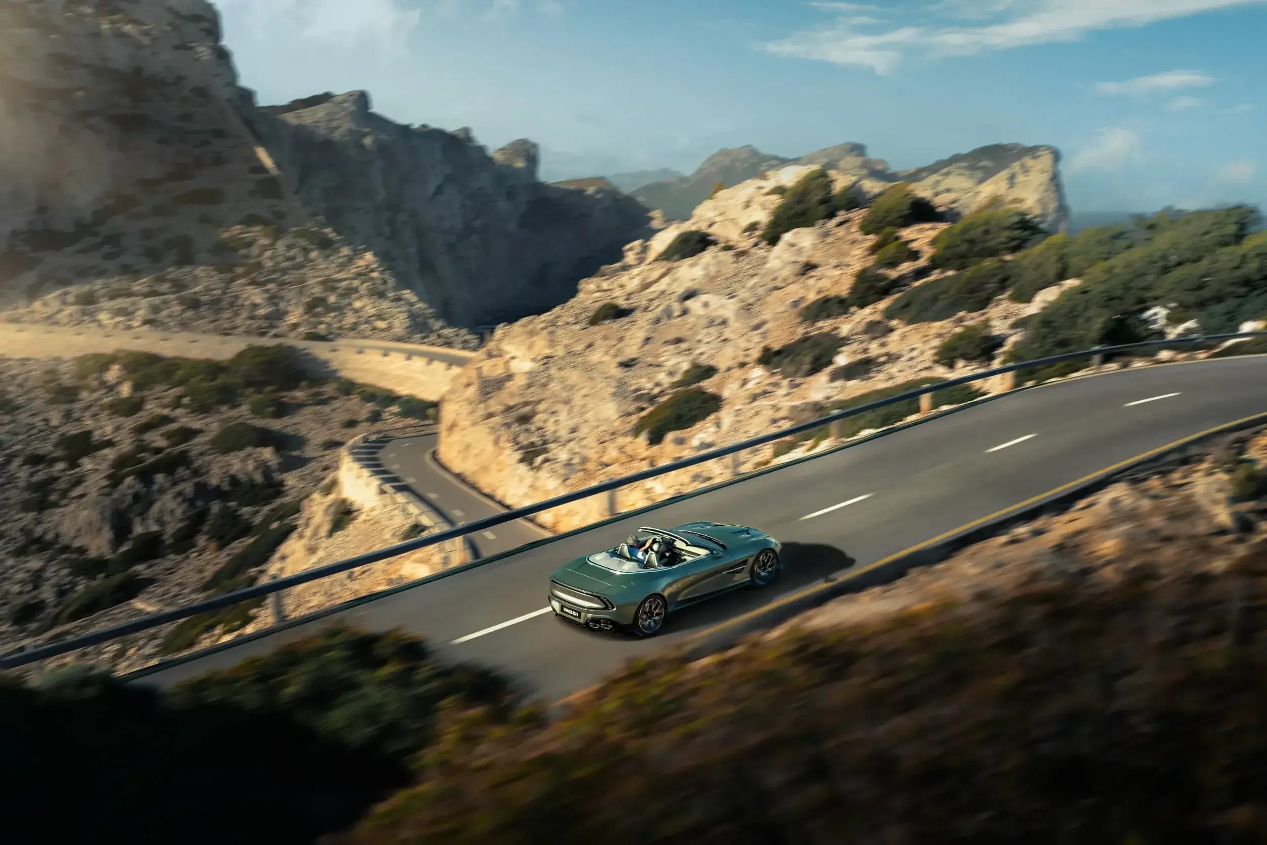 Despite its breathtaking performance, the Vanquish Volante retains the refined silhouette of its coupe sibling. The lightweight K-fold roof operates seamlessly in 14 to 16 seconds at speeds up to 31mph, allowing occupants to effortlessly embrace the open air.